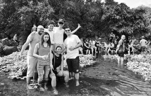 24日下午,几位法国游客在定安县龙门镇久温塘村感受冷泉的清凉。我省连日来的高温天气,吹热了冷泉游。