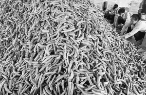 1月27日凌晨3点,记者随菜贩朱海东来到海口市高登街。此刻,整个城市还在沉睡中,但这里已车水马龙。以高登街与中山路交叉路口为中心向四个方向延伸,公路两边挤满从城郊赶来卖菜的农民,装菜的三车轮一辆挨着一辆绵延数百米。数百零售菜贩,一手拿电筒,一手提菜框,穿梭在三轮车之间,讨价还价声此起彼伏。