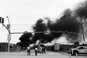 5月28日,在美国马里兰州巴尔的摩,浓烟从火车出轨事故现场冒出。