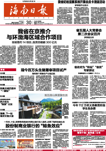 海南日报 头版 001 2013-05-301 2013年05月30日 星期四