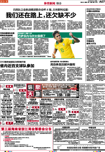 海南日报 体育新闻综合 007 2013-06-241 2013年06月24日 星期一