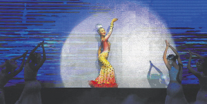 舞台大幕徐徐拉开,在层次丰富、效果斑斓的炫彩灯光的映托下,周琳琳以一个美人鱼的形象站上了舞台中央。深邃的海洋世界,有一个动人的传说,在暮色微醺的时候,美丽的人鱼公主在波光粼粼的海面上歌唱,周围满是倾慕的鱼儿,他们随着人鱼公主曼妙的歌声舞动,静谧的海洋瞬间沸腾。周琳琳的个人专场舞蹈晚会便是以《沸腾的海洋》作为开篇,向人们展示人鱼与海的依恋。舞台背景LED屏幕上,三沙纪念碑、南海更路簿等人们熟悉的场景和实物巧妙地穿插展现,一下子拉近了舞台与观众的心灵距离。