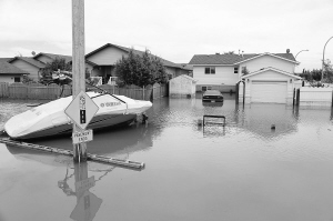 6月29日,在加拿大西部艾伯塔省海里弗,房屋被洪水包围。