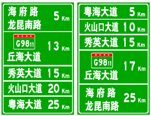 四、海口城区出口地点距离标志及海南环岛高速路径示意标志