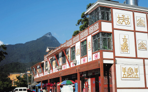 7月2日,位于五指山山麓的五指山市水满乡街道立面正在进行全面改造,一条充满民族风情的商业街蜿蜒在满目青翠的群山间,犹如世外桃源令人神往。 本报记者 苏建强 摄