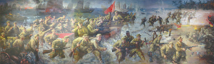 在黄信驹的创作中,对海南本土题材的关注成为一个显著的特点。《烽火南天———解放海南岛》是黄信驹耗时两年打造出来的500cm×160cm的鸿篇巨制。