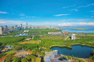 海南坚持生态省建设,绿色发展理念深入人心。图为绿树掩映的海口,呈现出迷人的南国风情。