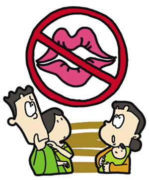 在健康人群中带EB病毒率为15%,也就是说“接吻病”防不胜防。尽管接吻病的感染率很高,90%以上的人都曾经感染过该病,但真正发病的人却较少,原因是这个病具有自愈性。如果在上呼吸道感染高发的秋冬季,加上免疫能力低下的宝贝来说,此时此刻与宝贝的过度亲吻或者老人将食物咀嚼碎后喂给宝贝等不恰当的喂养方式,都很容易引发“接吻病”。