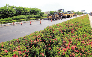 7月17日,海文高速公路海口段正在为摊铺沥青路面进行准备施工。据了解,海文高速公路将由原来的水泥混凝土路面改为沥青路面(又称“白”改“黑”),这是海南首条“白”改“黑”高速公路,可增加路面结构厚度并提高其承载能力。项目计划投资7.5亿元,预计2014年1月底前竣工。 本报记者 张杰 摄