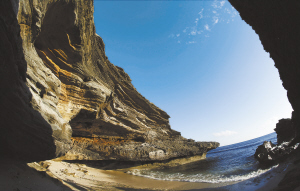 “站在石岛制高点上看海,另有一番景象。”兰建琼说,近岛处海水清澈见底,由于水较浅,海水呈蔚蓝色,而远离礁盘,水深突然加大,海水成了深蓝色,两种蓝色绝然分界,且在分界线处形成一道道白色的波浪,似乎远处才是岸边。此岸彼岸若即若离,若隐若现,涛声若有若无,在烈日炎炎下任阵阵海风吹拂思绪。