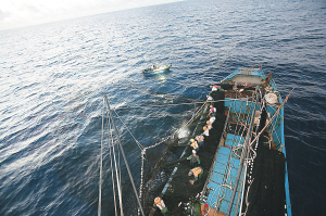 在南沙海域作业的渔船,七成以上来自琼海潭门。1990年代是潭门渔民前往南沙捕鱼的黄金时期。那时,船老大丁之强经常去南沙六门礁附近捕鱼,平均每年都有3至4个航次,每次50天左右,所以他对南沙海域非常熟悉。