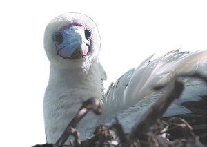 “鲣鸟真是非常美丽的鸟儿。”一位在三沙当过女兵的朋友告诉我,在她眼中,鲣鸟是最美的海鸟,因为它羽毛洁白无瑕,双腮桃红若害羞的少女,脚蹼艳红如彩霞;因为它性情温驯,对人类友好信任,而且坚守爱情,若一只不幸,另一只则会孤独终老。