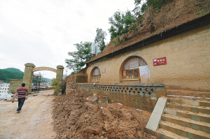 7月初以来,接连的强降雨对延安地区的部分革命旧址造成侵害。在中共中央西北局旧址,目前已出现三处较大的山体滑坡,围墙、护坡等发生多处裂缝和坍塌,旧址窑洞发生不同程度的漏水和裂缝,受损窑洞数量已达50孔。图为旧址外堆积了大量滑落的淤泥。 新华社发