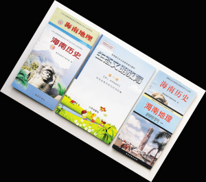 林泽龙告诉记者,《海南地理》、《海南历史》两本乡土教材,自上个世纪90年代初以来经多次修订后,一直延续使用至今。记者翻阅《海南历史》一书,以冯白驹的塑像为封面,书中从三亚落笔洞、昌江县霸王岭、皇帝洞开始追溯海南岛的历史源头,其间涉及海南古代经济、古代文化以及抗战中的海南等。