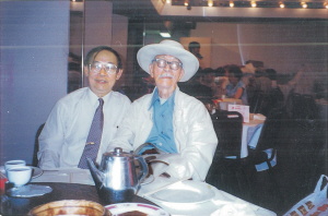 座谈会结束后,我邀纪弦先生在附近的万寿宫茶叙。在与他的交谈中得知,纪弦于1974年2月自台湾成功高中退休,1976年12月离台来美,曾在加州暂住,于次年才迁来旧金山市,住进女儿、女婿买下来的新居(老人公寓)。晚年移居美国,对老诗人来说,“黄金般的昔日已不再,而神话般的往事已如烟。”不过,他告诉我,他和老伴住在这里,生活安定,与世无争,自得其乐,儿女都很孝顺,经常写点诗和散文寄回台湾发表。说到这里,他呷了一口茶,又以幽默的口吻道:“世上唯有写诗这一行业是没有退休制度,也不允许你停笔的。”我们相视而笑。