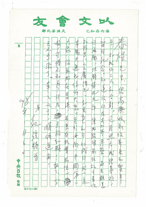 纪弦毕竟是性情中人。前封信表露了诗人对友情的无比珍惜,并对平生未来向往中的中国第二大岛———海南岛一游,表示极大的遗憾。倘若他当年梦想成真,该会给海南岛留下多少瑰丽的诗篇啊!