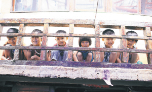 渔家的孩子们,在大人的带领下,参加完整个祭祀仪式。得知要杀猪,他们跑到二层甲板,趴在船舷上,捂着眼睛偷看,惊叫声大笑声混成一片……