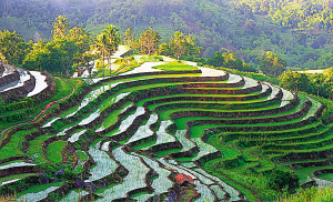 世界上许多地区都有梯田。梯田最早出现在史前时期,起初人们清除森林或小山顶,以便种植一些粮食作物,或者作为防御工事。我国梯田主要分布在江南山岭地区,其中广西、云南居多,其中以云南哈尼梯田、广西龙脊梯田和湖南紫鹊界梯田较为出名。云南的哈尼梯田文化景观 规模宏大、气势磅礴,景观壮丽、内涵丰富,有着“中华风度”、“大地雕塑”等诸多美誉,已被选入世界文化遗产名录,成为中国乃至全世界的文化瑰宝。