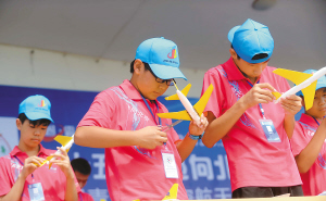 同样是纸飞机,8月4日在海口举行的第十五届“飞向北京—飞向太空”全国青少年航空航天模型教育竞赛总决赛(简称“飞北赛”)开幕式上,却有了“一飞冲天”的本领:这些纸飞机用厚实的纸板做成,外形朴实无华,如同孩子的手工,经典的尖尖头、宽大机翼。但隐藏在机翼之间,电动机、接收器等给这些“纸飞机”不一样的“心”。在全国冠军的遥控下,这些机翼展开长度近半米的“纸飞机”,能进行翻滚、转弯、绕圈、直飞等多种飞行动作,甚至能爬升到几十米的高空。表演现场,不论操控者还是观看者,都把头使劲地仰着,目光努力追寻着那些轻巧的身影,心中充满风一样的感动。