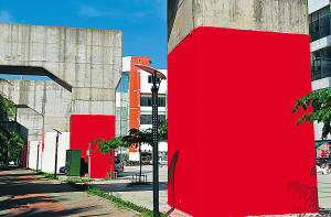 7月31日,路过海口南海大道汽车南站的市民发现,东环高铁几根水泥桥墩忽然变成了红柱,非常刺眼,极易分散司机注意力。据了解,附近一家建材城为营造气氛,专门将门前广场上东环高铁的几根巨大水泥桥墩涂抹成红色。
