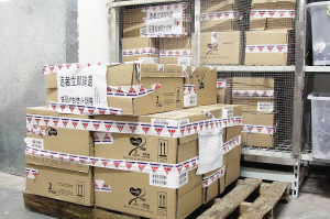 8月5日,海口多家超市对多美滋奶粉进行了下架封存处理。图为封存在某大型超市仓库内的多美滋产品。 本报记者 武威 摄