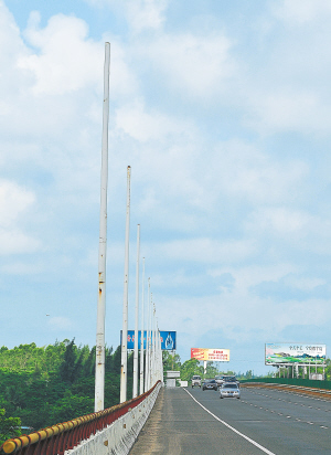 南渡江大桥60根灯杆成“光杆司令”