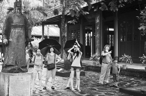 8月7日,游客在海口五公祠内观光游览。当日是传统节气“立秋”,正当南方出现今年以来最强劲的高温天气,椰城气候却清凉怡人,游人纷至沓来,“清凉游”开始升温。 海报集团全媒体中心记者 张茂 摄