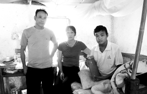 琼中黎族苗族自治县什寒村村民王锋(图右)今年20岁,因身患尿毒症,导致家庭陷入贫困。在这次群众路线教育实践活动中,省委办公厅领导在深入基层了解这一情况后,发动全体职工为其捐款55440元,以实际行动践行“心中有群众,奉献见行动”。 通讯员 韩瑞良 谭键 摄
