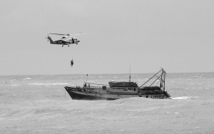 据了解,遇险渔船一艘名为“琼乐东11013”,在三亚市西面约15海里西岛附近海域处,因渔船主机发生故障导致抛锚,船上5名渔民被困。另外一艘名为“桂合渔10215”,在文昌清澜港附近抛锚,船体进水已经明显倾斜,9名船员在甲板上等待救援。接到报警后,南海第一救助飞行队B-7304救助机组连续出动,成功救助遇险渔民。