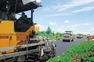 为了确保工程能按期完工通车,只要天气允许,工人们会从早晨6时一直工作至晚上10时,节假日无休。目前工程一标段右幅已摊铺底面层沥青约7600米,中面层约7500米,预计8月底开始摊铺面层,计划9月底开通。