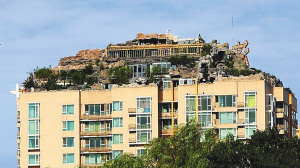 “中国网事”记者12日实地探访看到,建筑沿楼体边缘而建,覆盖全部楼顶,岩石质感的建筑材料呈现灰褐色,房屋布局错落有致,绿色植物掩映其中,“宏伟大气”的建筑酷似一座人造“花果山”。