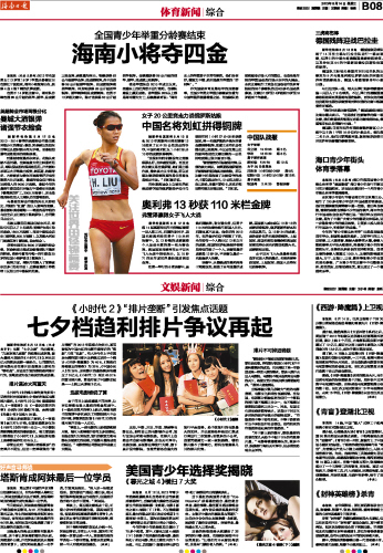 海南日报 体育新闻 文娱新闻 016 2013-08-141 2013年08月14日 星期三