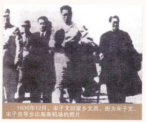 1936年12月2日,宋子文、宋子良一行14人乘杜格拉斯号巨型飞机到了海南。此时距离宋耀如1886年的回乡已有整整50个年头,宋子文此时的身份是国民政府任命的全国经济委员会常委,宋子良是广东财政厅厅长。抵达海口后,在海口市中山纪念堂举行欢迎大会,宋子文、余汉谋相继演讲开发琼崖之意义。