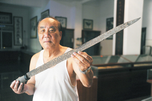 “这把军刀是2005年8月好友孙有经托人从乐东九所镇带来给我收藏的。”文博馆主人蔡明康先生介绍,这把军刀主要用于战时指挥,刀刃锋利无比。村民们常拿它去砍树根、削石块砌房屋。因使用率较高,刀柄便脱落了,刀刃也钝了许多。