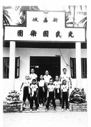 光武国术团筹建之初,地址设在佘街双桂斋(即后来的琼崖林氏公会),后搬到有方便学员练习大场地的国泰戏院的三角埔,正式成立后,会址决定设在樟宜10条石。在这里,培训了大批琼籍子弟乡民,直至20世纪80年代末迁至樟宜工业区。