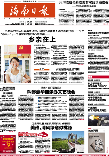 | 海南日报 头版 001 2013-08-261 2013年08月26日 星期一 |