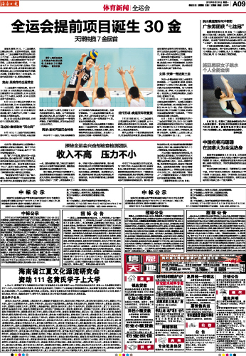 | 海南日报 体育新闻全运会 009 2013-08-261 2013年08月26日 星期一 |
