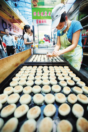 “这么爱吃饼,以后把你卖到内地去。”叶老板深深地记得父亲在他小时候说的这句话,从小生长在南方的他对饼情有独钟,长大以后,他就想开一家饼店。问他为什么大家都爱吃他家的绿豆饼时,他脸上难掩那份自豪感。“我几乎把全国所有有名的绿豆饼店都跑遍了,到处拜师学艺,收集了很多做绿豆饼的精华方法,才开了这家饼店。”说着,他激动地把一道道工序展示给记者看,揪蛋—打卷—拍皮—包馅—拍饼,手脚麻利,一转眼就做出了一个饼,真是让人体会到了什么叫“真功夫”。