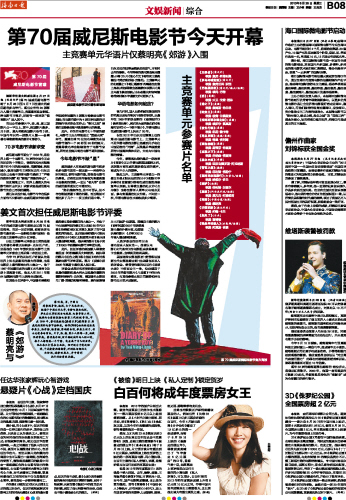 海南日报 文娱新闻综合 016 2013-08-281 2013年08月28日 星期三