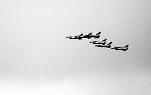 8月30日,在俄罗斯莫斯科郊外的拉缅斯科耶机场,中国空军八一飞行表演队在航展上表演。