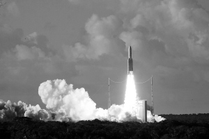 法国巴黎时间29日22时30分,欧洲阿丽亚娜航天公司的一枚阿丽亚娜5型火箭从法属圭亚那库鲁航天中心发射升空(上图),将两颗通信卫星送入轨道。 新华社发