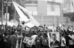8月30日,在埃及首都开罗,穆尔西支持者在总统府前喊口号。