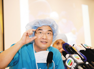 当日,山西被挖眼男童在深圳希玛林顺潮眼科医院接受植入义眼的手术。18时许,男童被推出手术室。深圳希玛林顺潮眼科医院院长林顺潮在手术结束后举办了简短的记者见面会。据林顺潮介绍,手术顺利。由于男童两只眼睛眼球周边软组织的破坏程度不同,因此对两只眼睛采取了不同的手术方案:右眼眼球周围尚有足够的软组织,因此植入义眼球;左眼眼球软组织不够且疤痕较多,因此采取自体皮肤脂肪瓣移植的方法取代义眼球植入。 新华社记者 毛思倩 摄