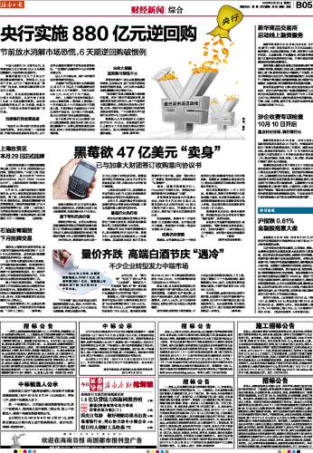 央行实施880亿元逆回购