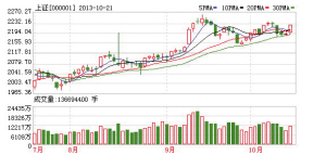 本报海口10月21日讯(记者陈平)上周市场本就处在选择方向的势态中,周一,隔夜美股大幅上涨,尤其是纳斯达克指数大涨的刺激,使A股网络科技等板块普遍飙升,新兴产业板块全线大涨再次刺激创业板指数拉升。大盘也借此选择向上突破的态势,沪指涨1.62%重返2200点之上,以2229.24点收盘。