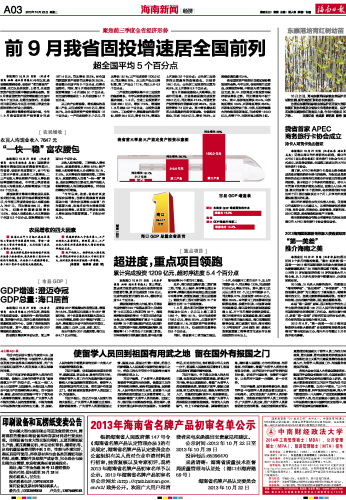 海南日报 海南新闻经济 003 2013-10-221 2013年10月22日 星期二
