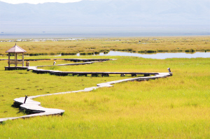在一望无垠的碧绿的大草原上,星罗棋布地散落着一个又一个玛瑙般晶莹透亮的湖泊,在这些小小的湖泊里,有高贵的天鹅在悠闲地游弋……这不是只有童话剧《天鹅湖》里才有的美景,在位于西域塞外的巴音布鲁克,随处可以见到这样的景致。