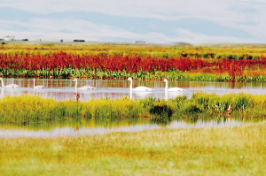 每年的3月、4月和10月至11月中旬是鸟儿飞来和飞走的时候,10月份来到红海滩,一方面可以欣赏到美丽的景色,再就是可以看到鸟儿群起群落的景象。
