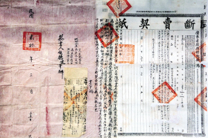 契约的出现,在我国可以追溯到很久远的时代。《周礼》记载了傅别、质剂两种书面契约,而且有专门的官员“司约”“司盟”负责收藏诸侯与民间的盟约与约契。秦汉时期,田房契约已初具规模。东汉以后,纸张应用到契约文书中,逐渐取代青铜、竹木,成为契约文书的唯一介质。东晋王朝创立契税之制,官府在已纳税的契约文书上钤盖官印,这种契约文书称为红契。红契是完备的法律文件,为合法契约。民间未钤印的契约为“白契”,“隐不告官,谓之白契”。
