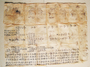 此外,在契文的书写内容上,李景新也发现了黎族地契的独有特点———特殊的符号和民间自造的俗写文字。如“身己”这个字,在黎族地契中频繁出现,经查各种字书都未发现有这个字,李景新推测,这大概是该地的地契特有的俗写字,也传达着某些习俗信息。